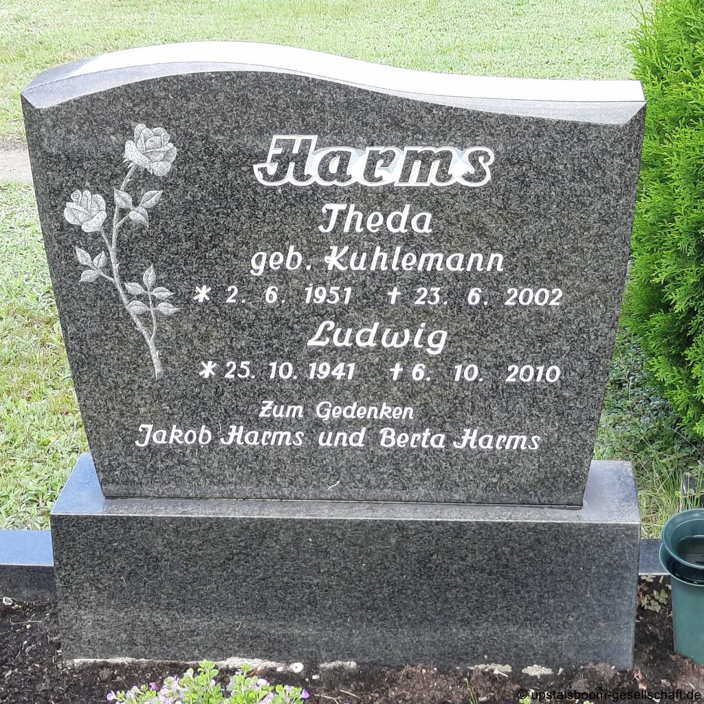 Theodor Harms, Friedhof Westrhauderfehn-Untenende