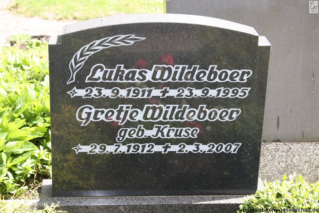 Gretje Wildeboer, Friedhof Uphusen-neuer Friedhof