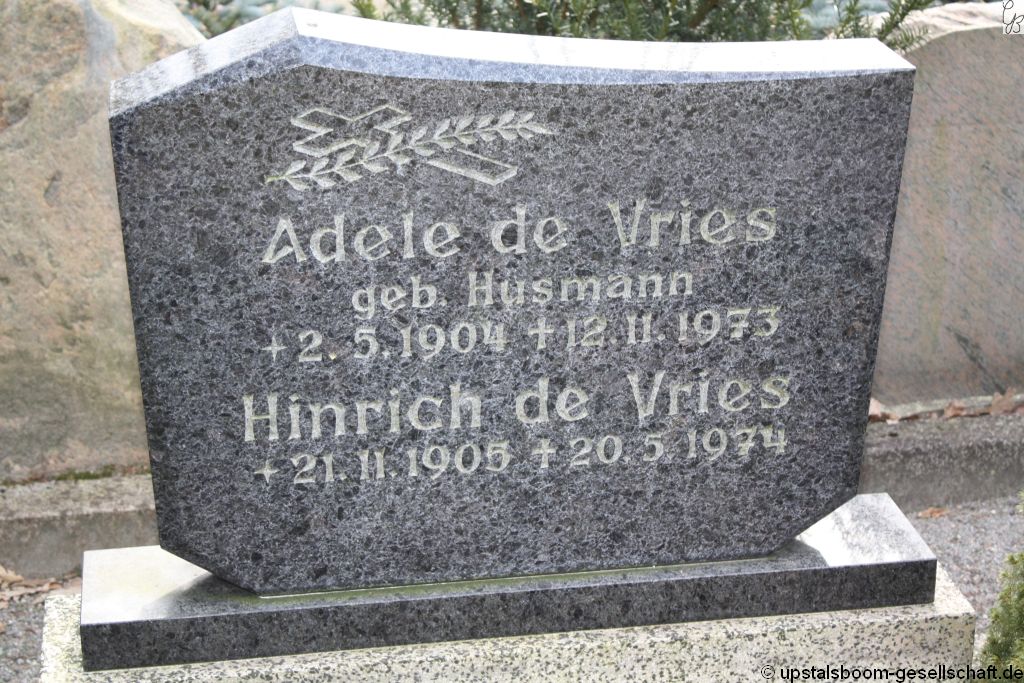 Johann Vries, de, Friedhof Uphusen-neuer Friedhof