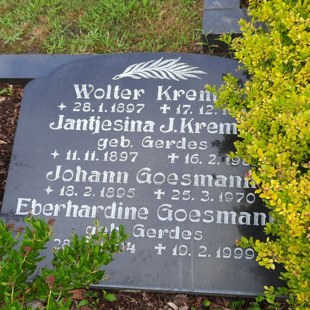 Johann Goesmann, Friedhof Bentstreek